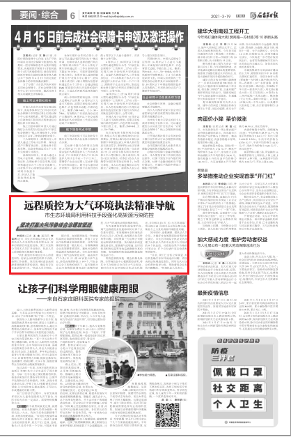 --摘自:石家莊日報,2021年3月19日第六版《遠程質控為大氣環(huán)境執(zhí)法精準導航》